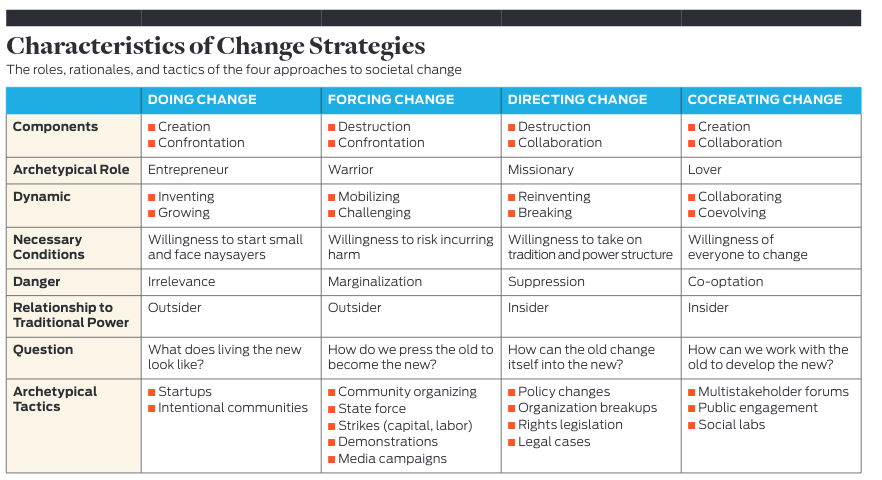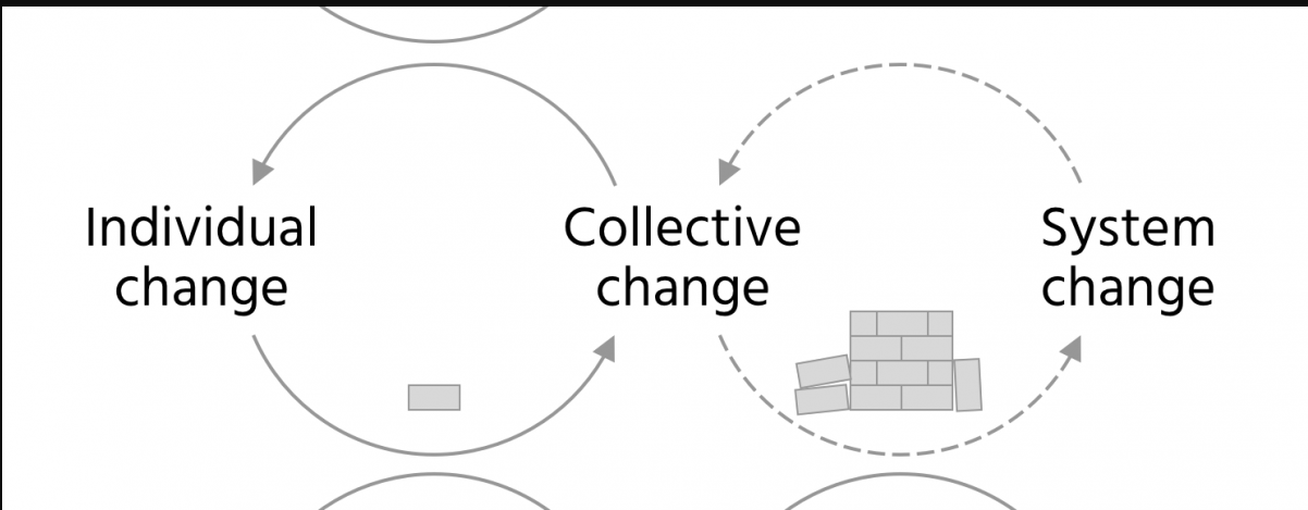 We have done a lot of work finding and explicitly articulating our organizational “objectives”, “commitments”, “values”, but we also need to explicitly agree upon our collective approach to change, our methods of change. Without a consensus on “how” we change, every individual attempt at creating a change is an individual struggle.